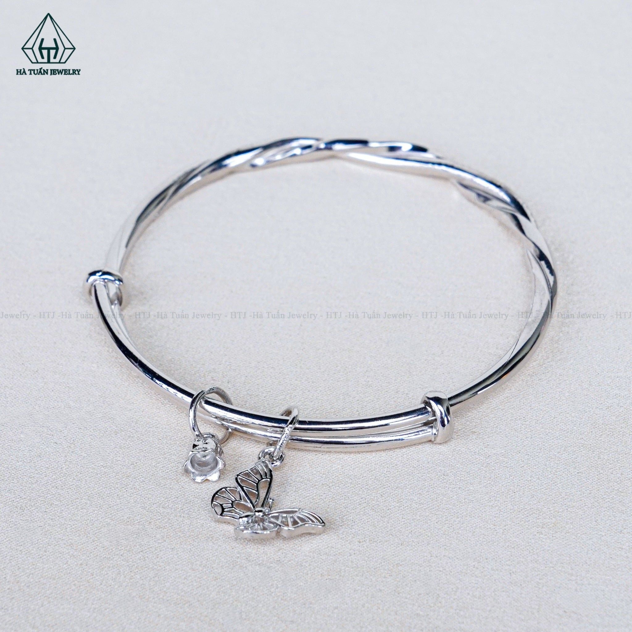 B086 Vòng tay xoắn charm hoa bướm