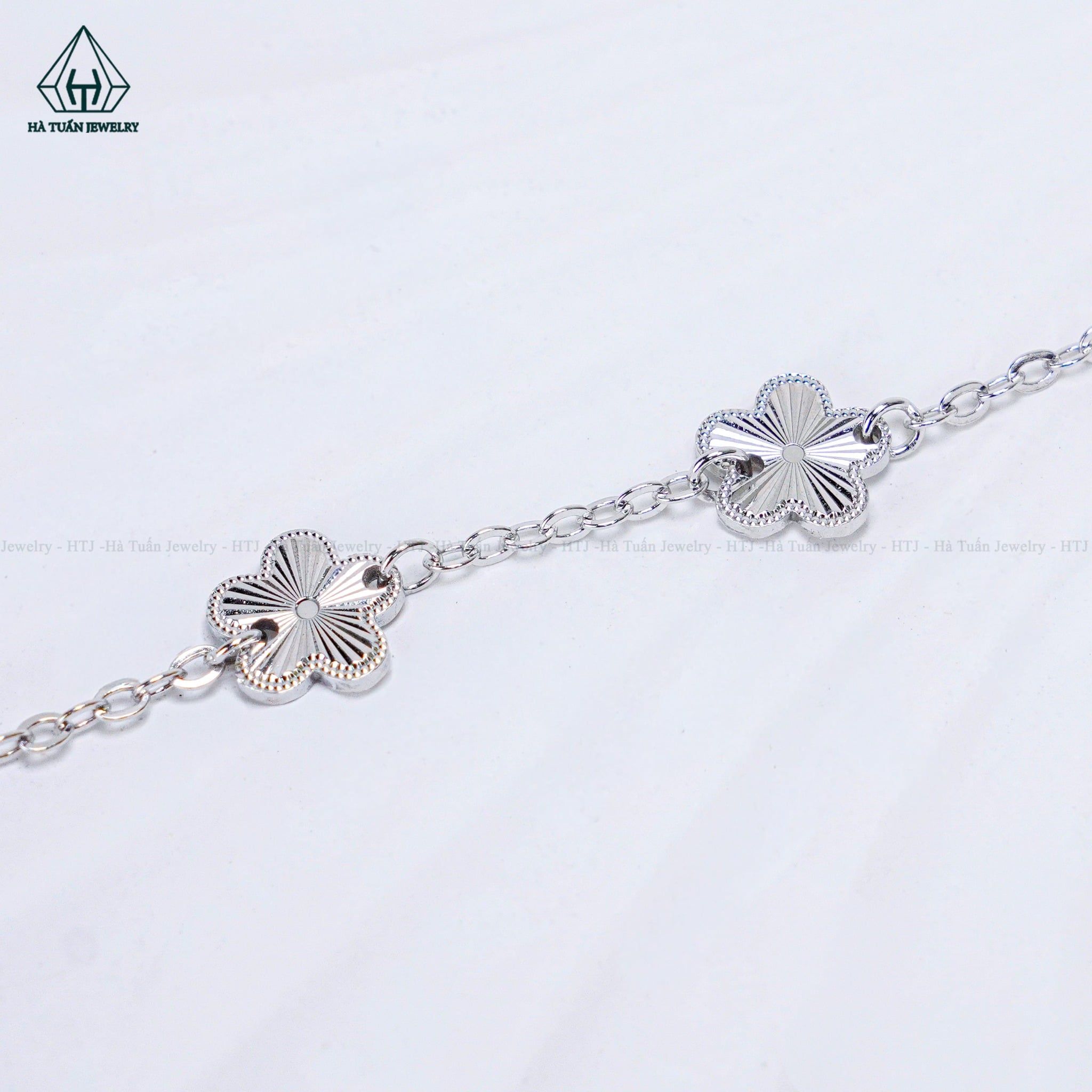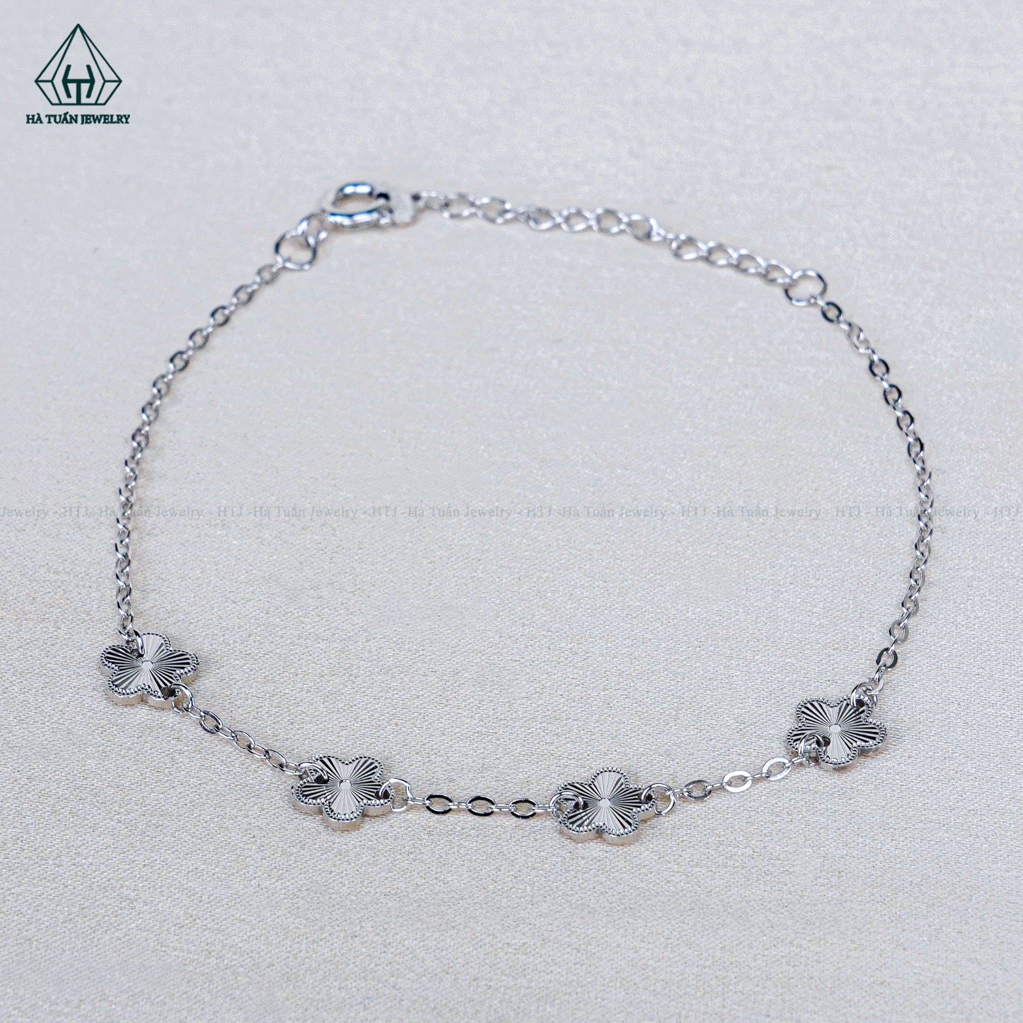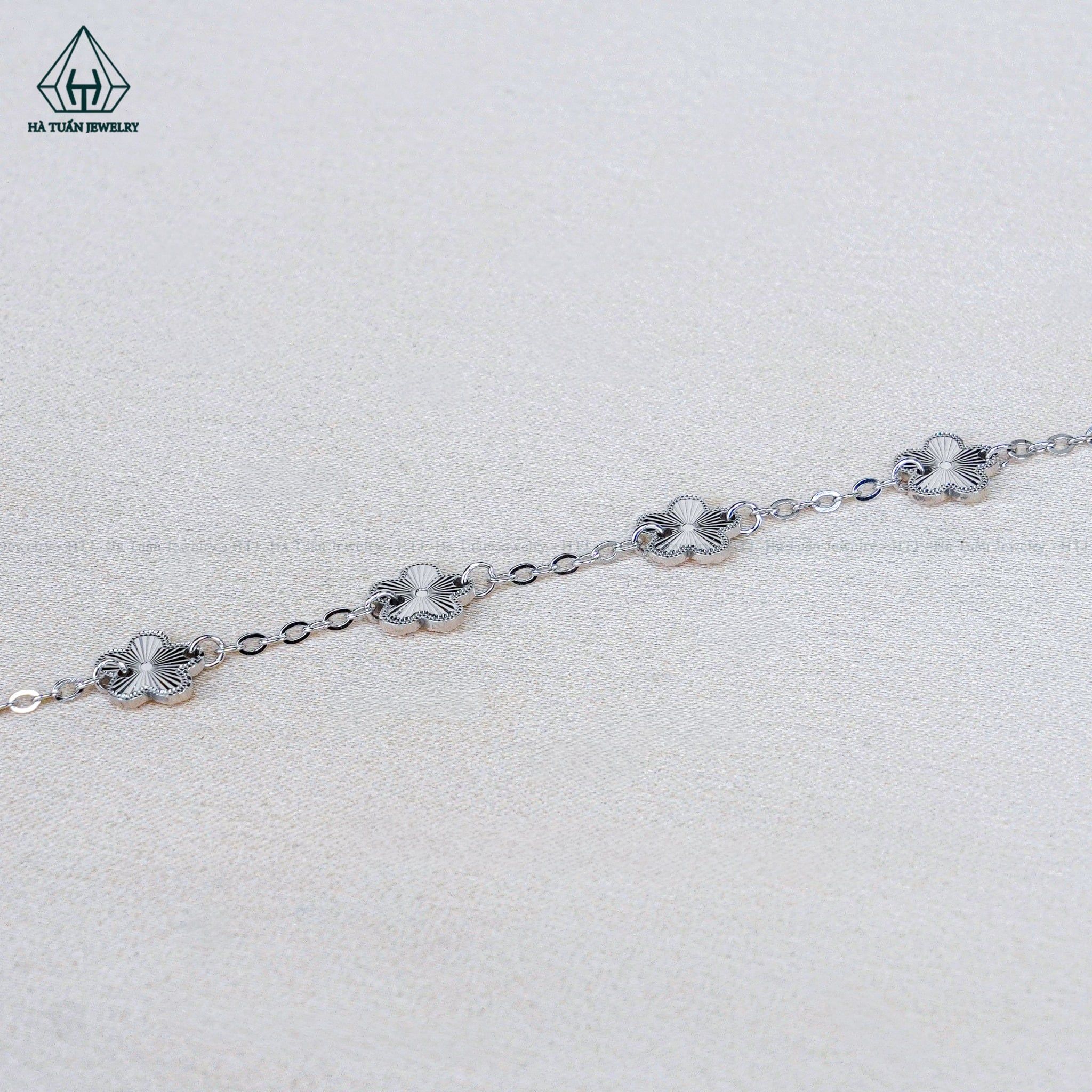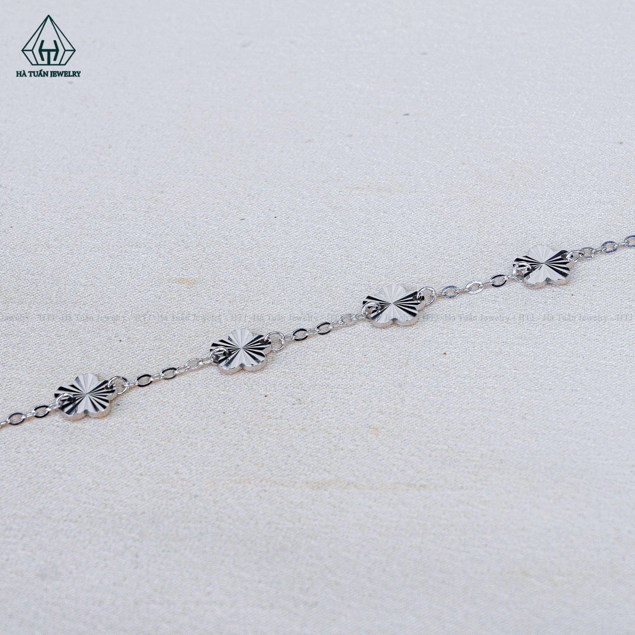 B093 Lắc tay V.A.N trắng 5 hoa móc máy