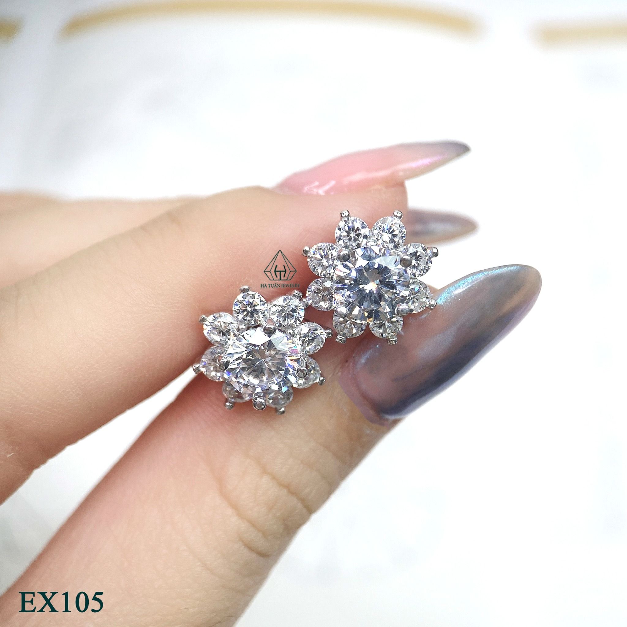 EX105 6.3mm Bông tai hoa 8 cánh nhọn