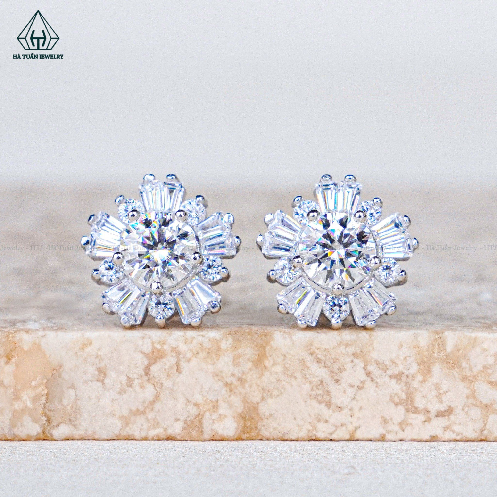 EX524 4.5mm Bông tai hoa 5 cánh baguette