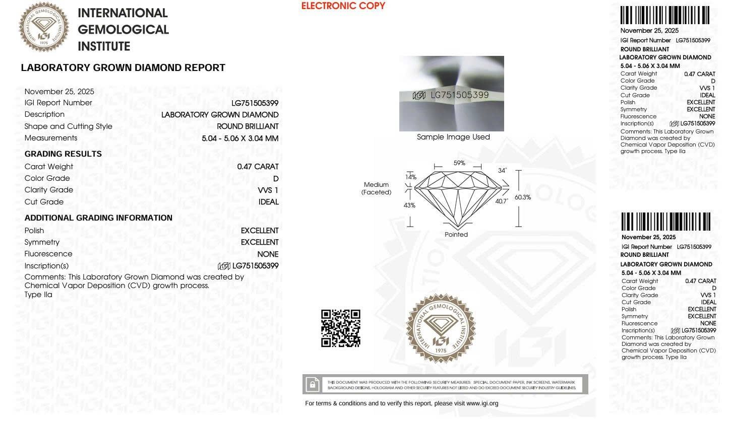 LDI50 Kim cương nuôi cấy 5mm-IGI LG751505399