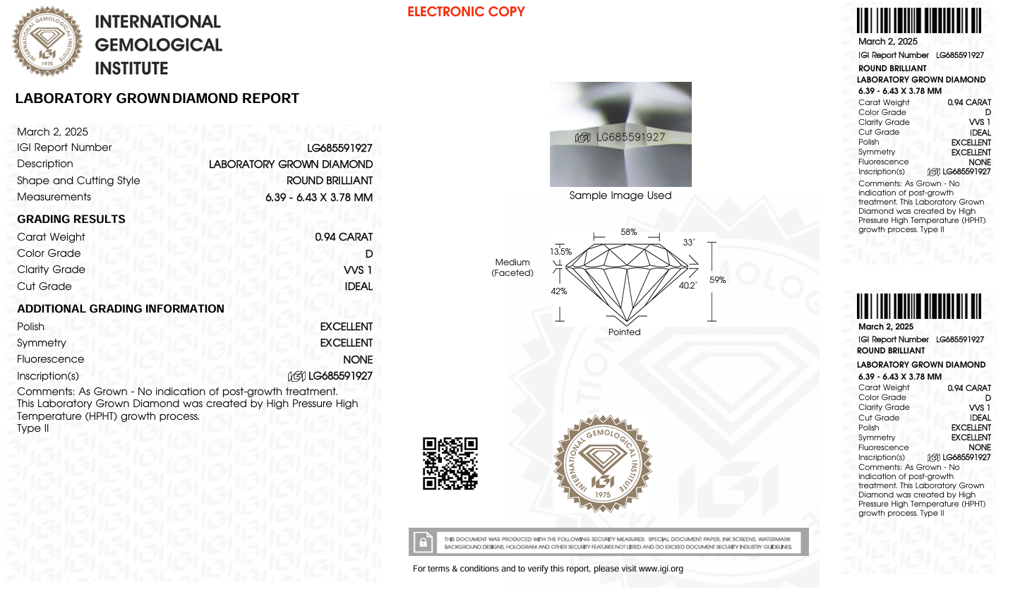 LDI63 Kim cương nuôi cấy 6.3mm-IGI LG685591927