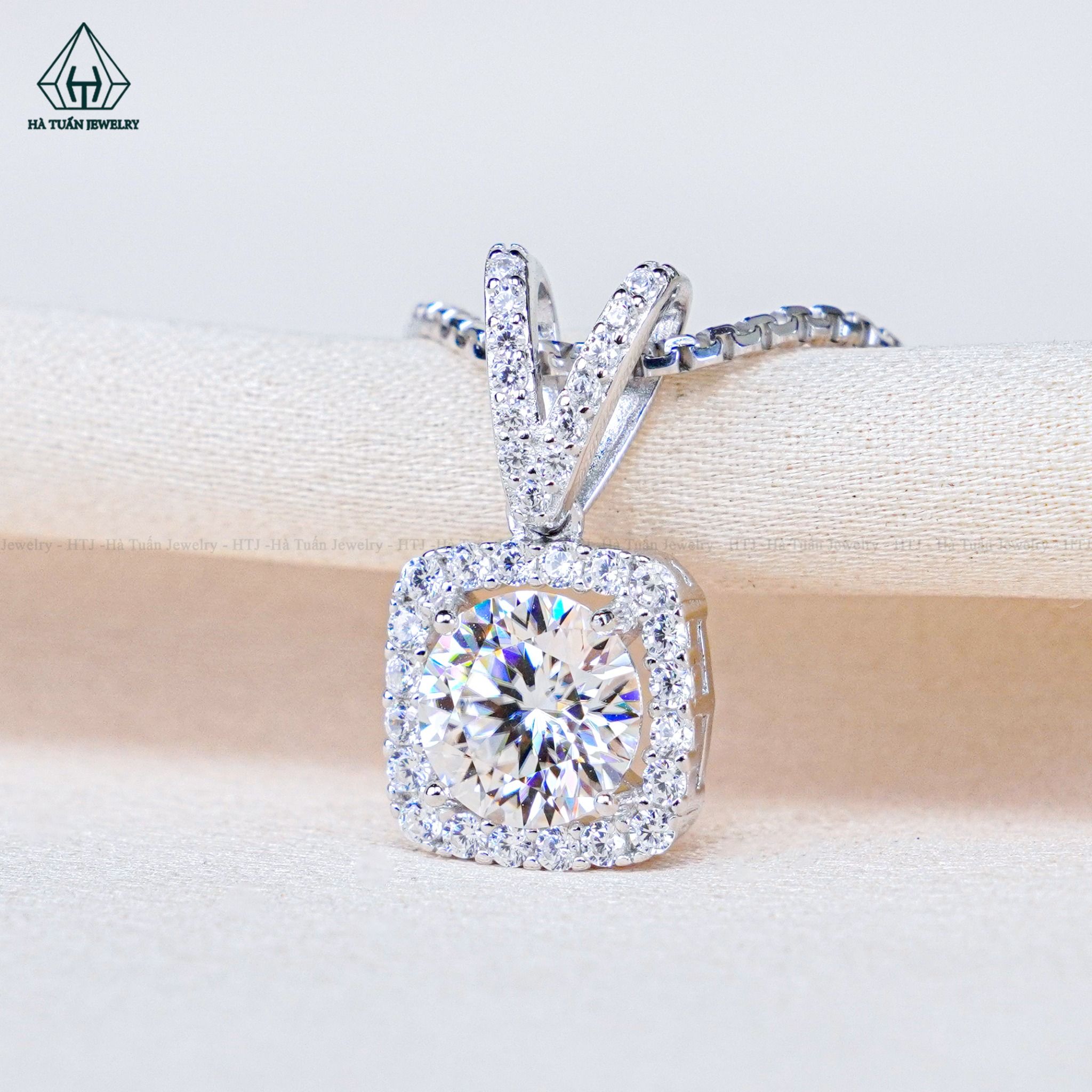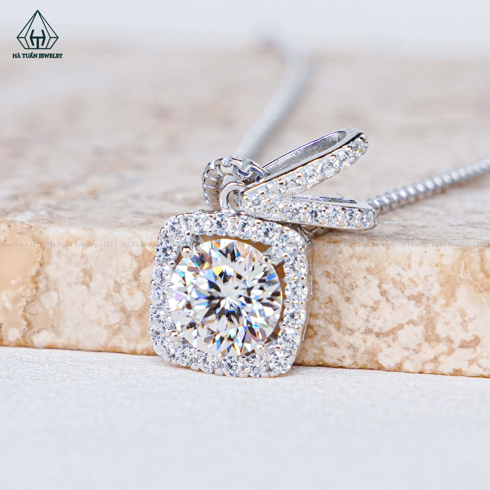 N702 Dây mặt liền vuông đá chủ MOIS trắng 6.5mm (không mã cạnh)