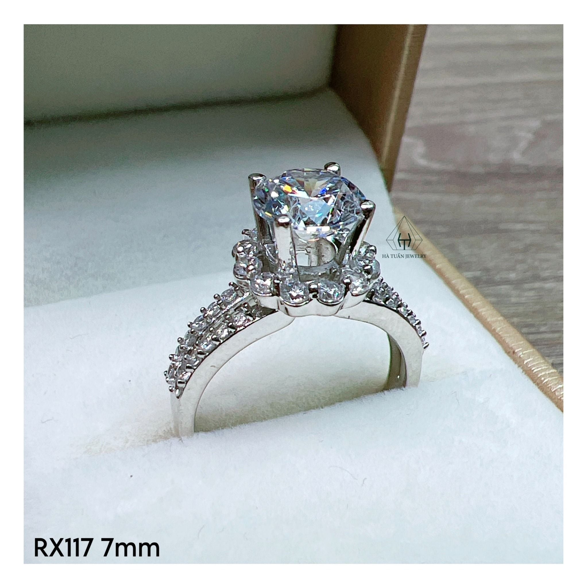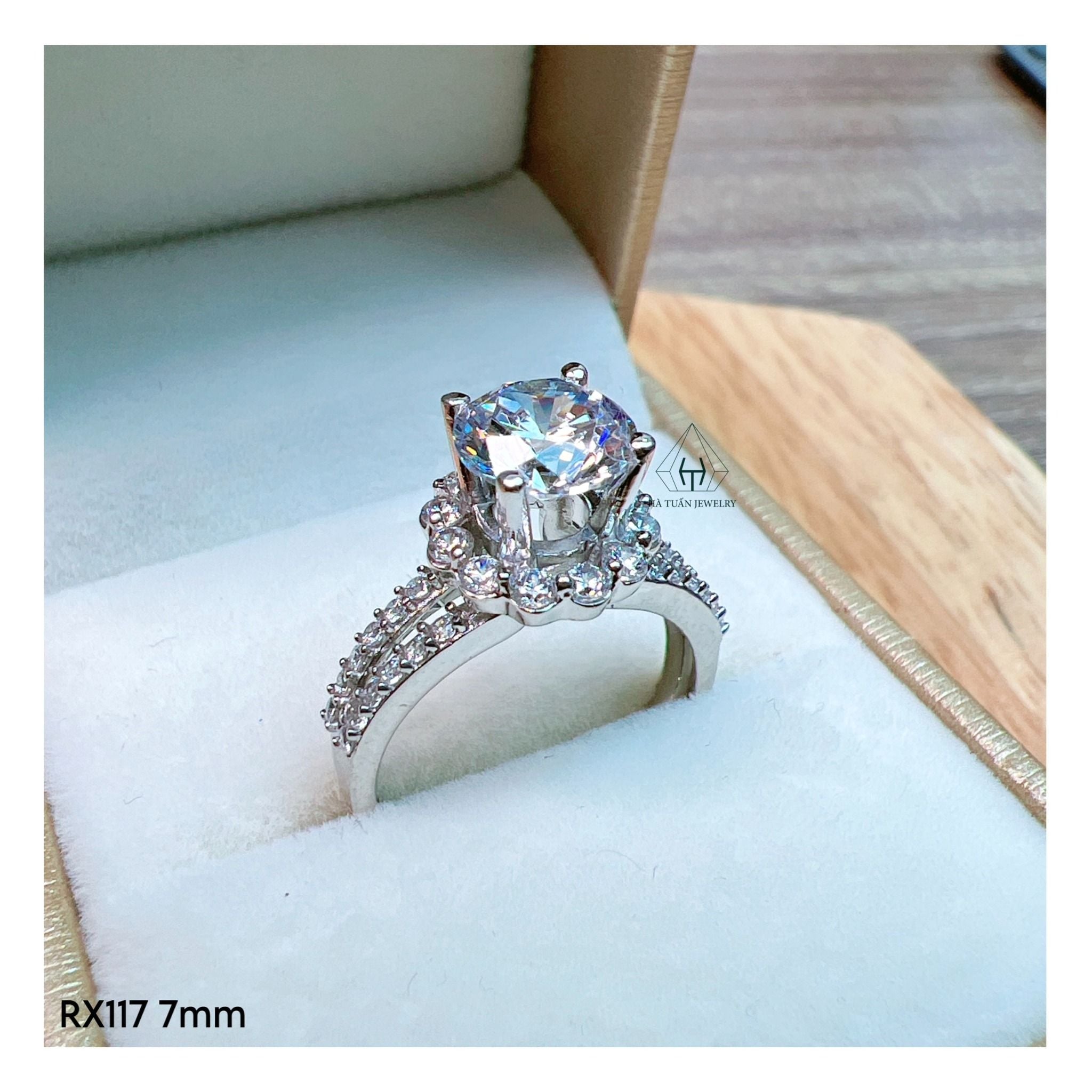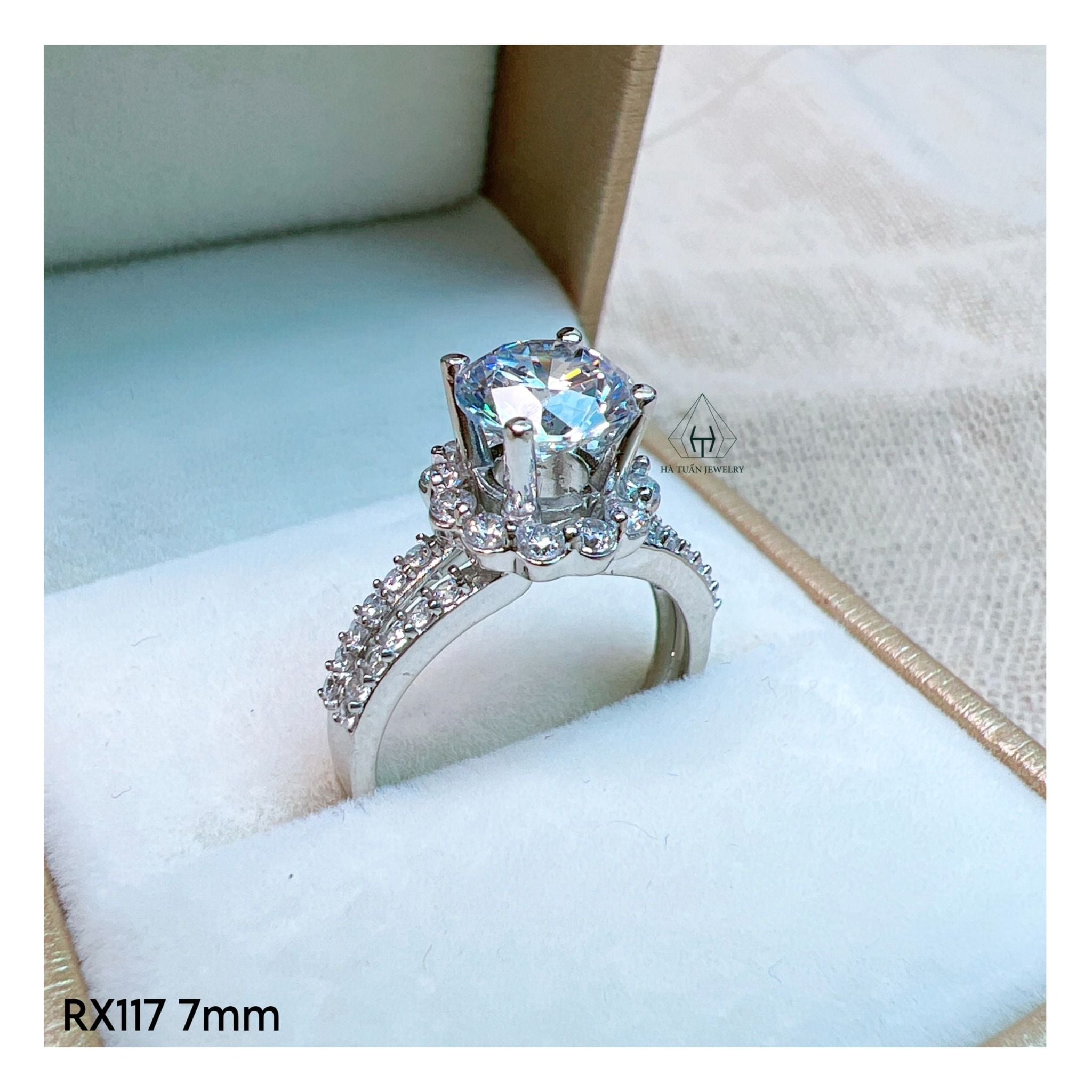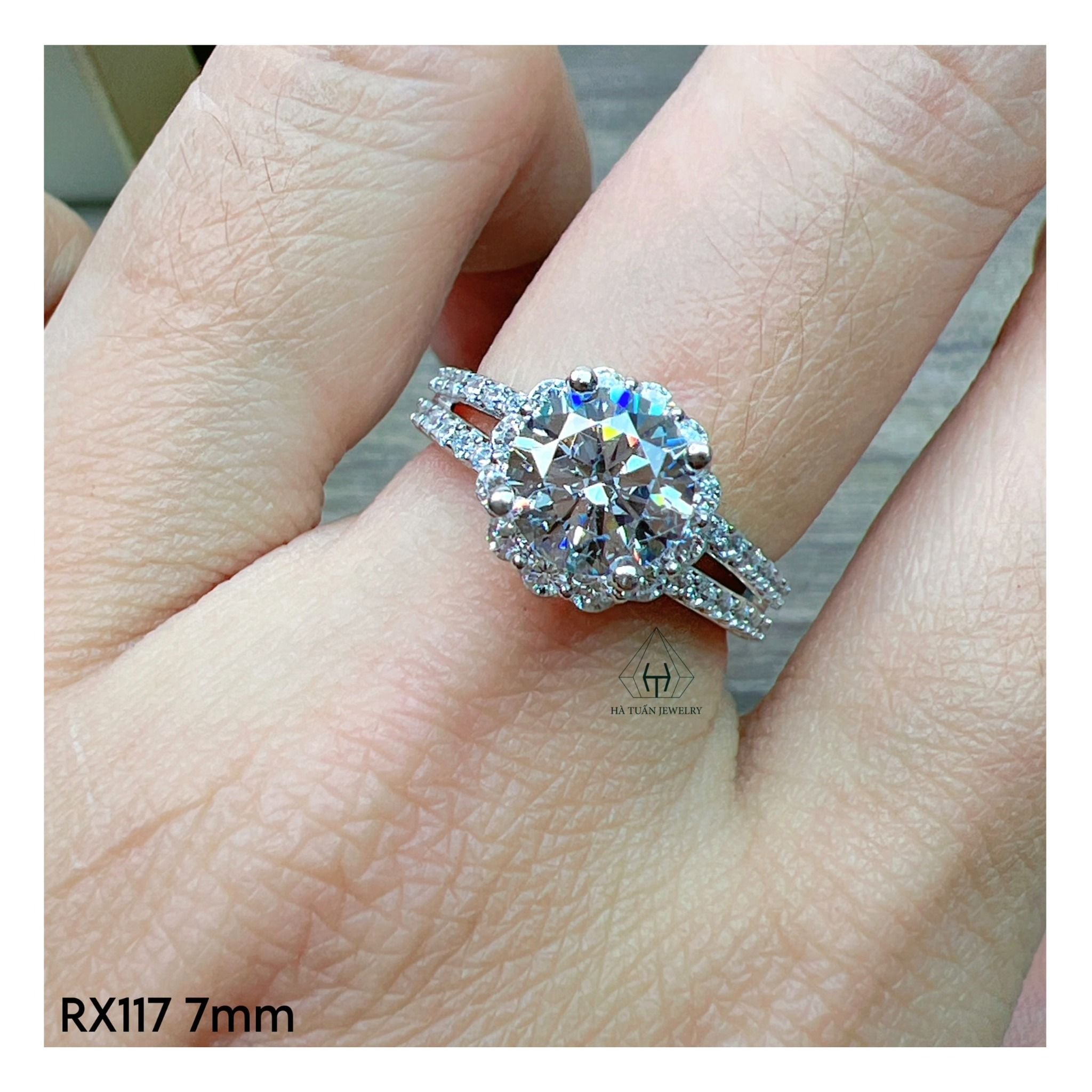 RX117 7mm Nhẫn đài tấm hoa 2 hàng đá hở