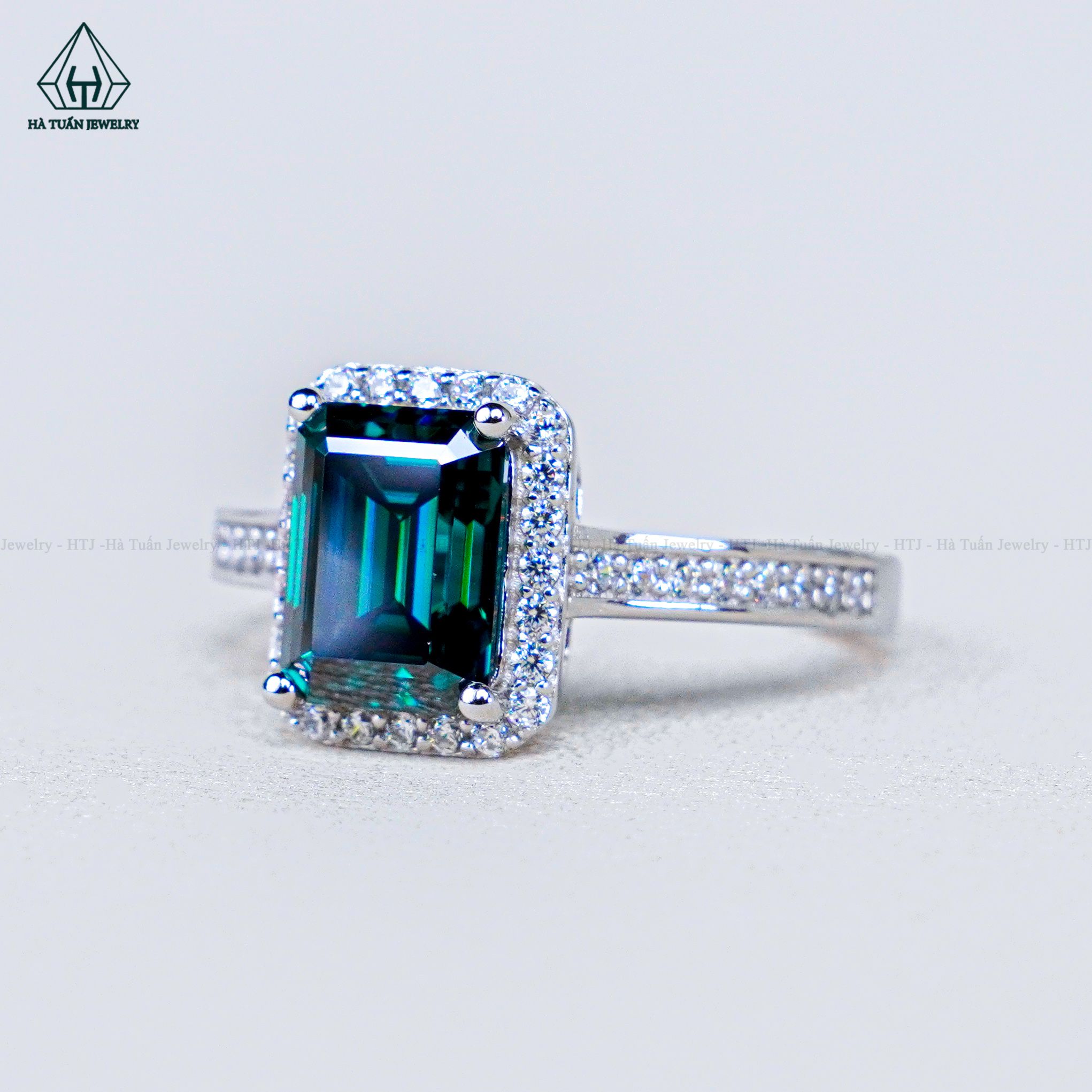 RX584 Nhẫn nữ halo Emerald 6*8mm xanh lá